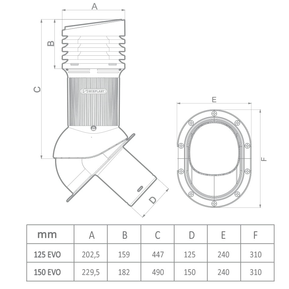 Producent WirplastKOMINEK WENTYLACYJNY Z ODPŁYWEM KONDENSATU NA ISTNIEJĄCY GONT, PAPĘ, TRAPEZ, RĄBEK STOJĄCY, BLACHY PŁASKIE E13 WIROVENT EVO 150