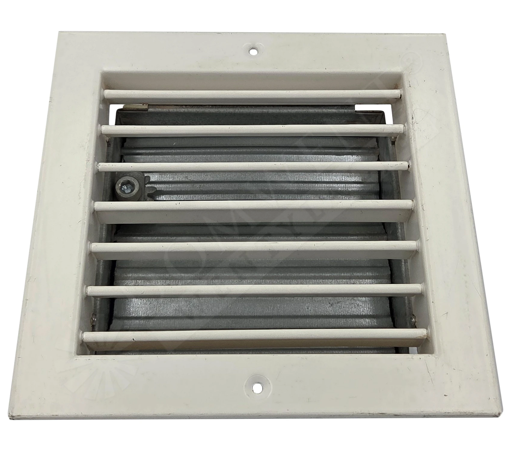 KRATKA WENTYLACYJNA ŚCIENNA ZAKOŃCZENIE KANAŁU KSH-P Z POZIOMYMI KIEROWNICAMI ORAZ PRZEPUSTNICĄ 150X150 BIAŁA