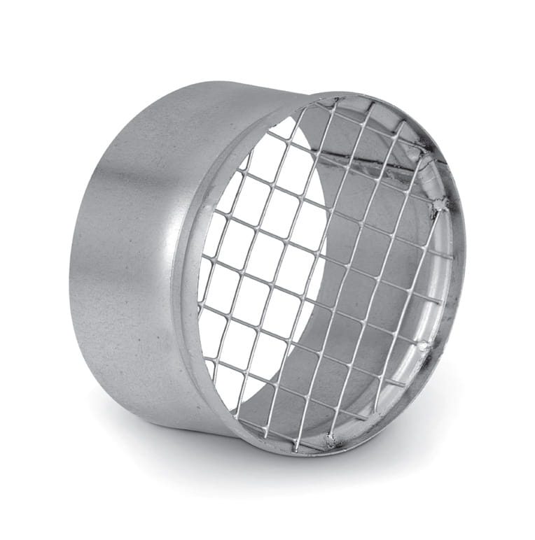 Króciec osiatkowany wykonany nyplowo z blachy ocynkowanej pasuje bezpośrednio do okrągłych rur SPIRO. Siatka zabezpieczająca na końcu króćca służy do ochrony wlotu przed dostaniem się ptaków, liści oraz większych zanieczyszczeń. Element ten stanowi najprostsze zakończenie kanału wentylacyjnego jednocześnie zapewniający minimalny opór powietrza.