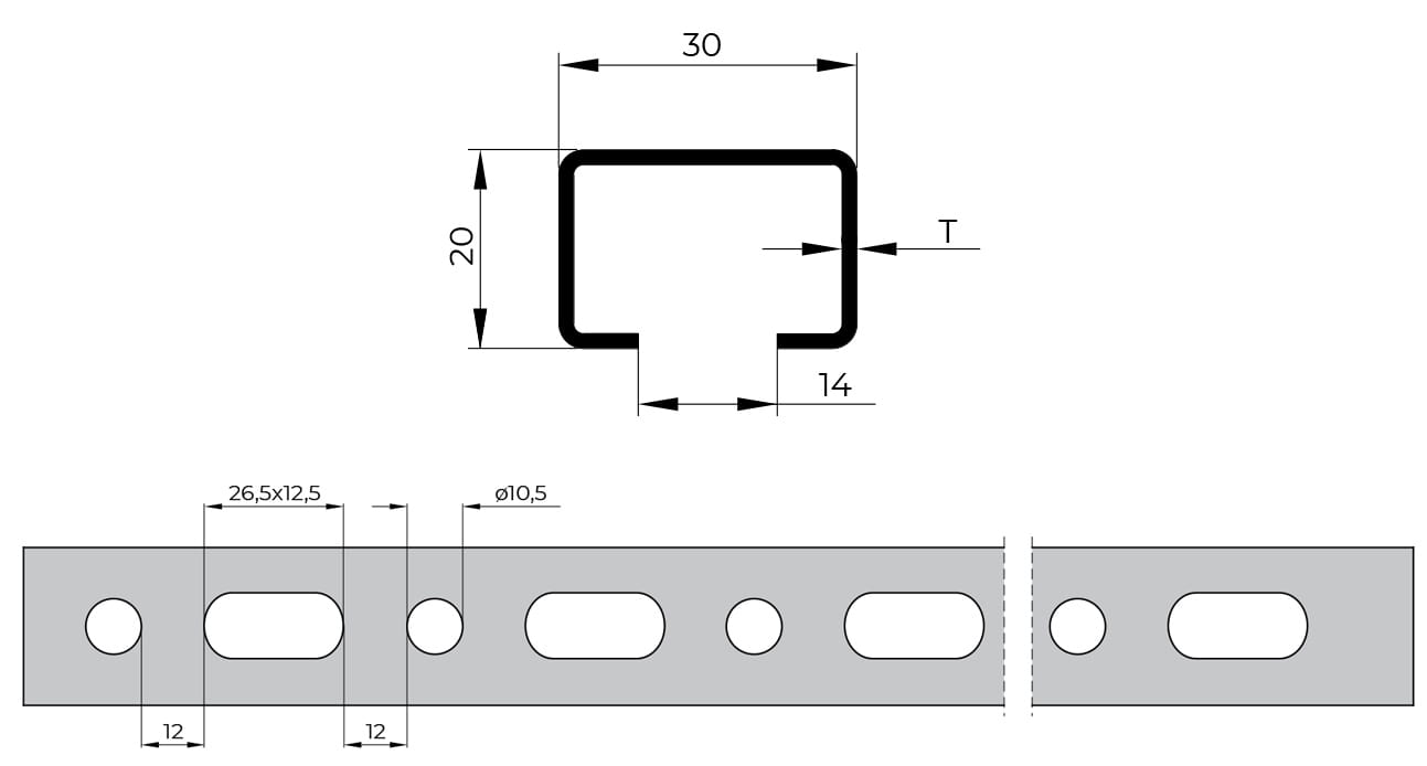 KSZTAŁTOWNIK MONTAŻOWY OCYNKOWANY 20 X 30 MM 1,5 MM 3 MB Z OTWORAMI INTERFIX