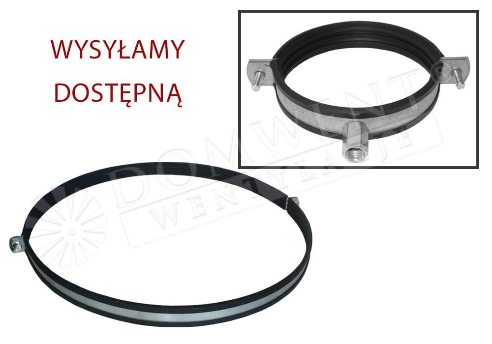 Opis: Obejma służy do mocowania, podwieszania rur typu spiro, flex, aluflex Ø710. Posiada uszczelkę gumową, która amortyzuje drgania dzięki czemu hałas nie przenosi się na konstrukcję, ścianę, sufit. Dane techniczne: