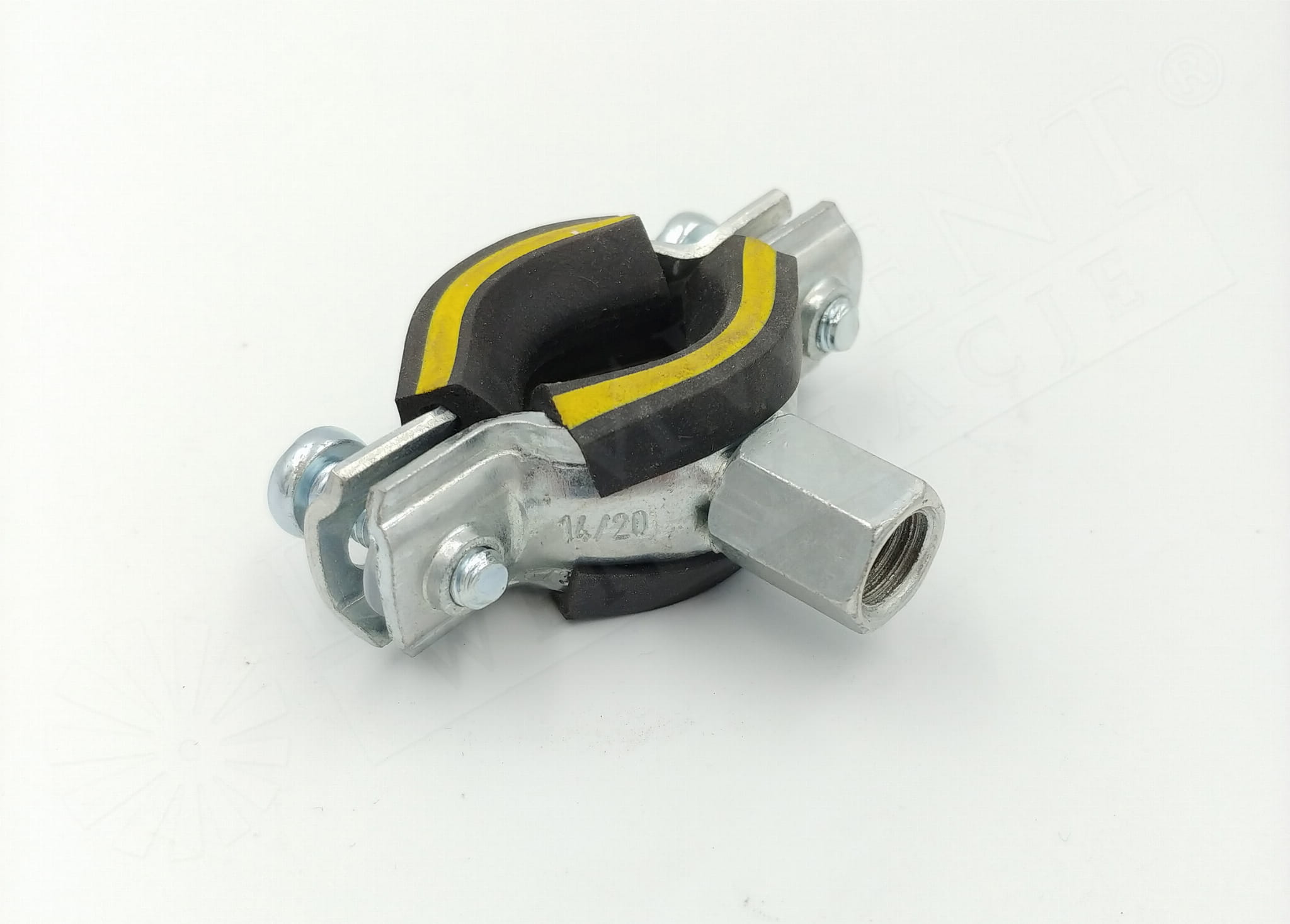 Obejma rurowa posiada uszczelkę, która amortyzuje drgania dzięki czemu hałas nie przenosi się na konstrukcję, ścianę, sufit. Obejma posiada nakrętkę-uchwyt mocujący widoczny na zdjęciu.