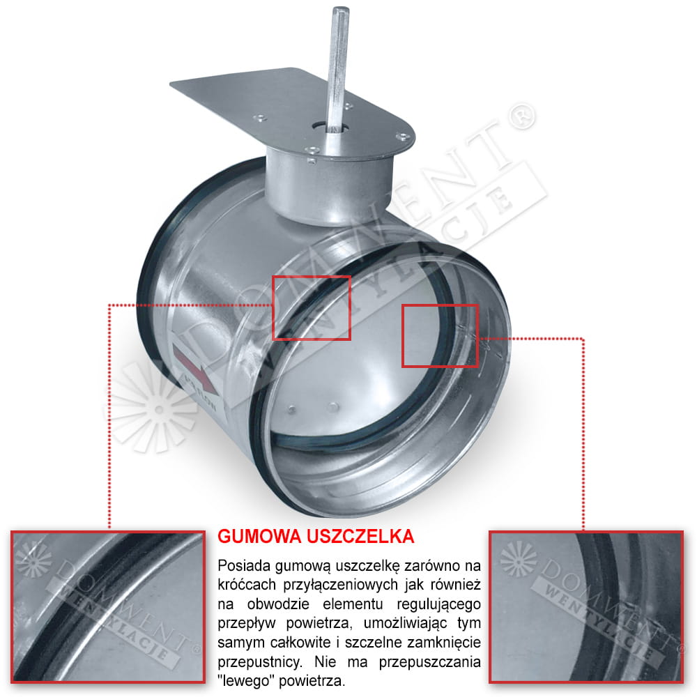 | PRZEPUSTNICA ZAMYKAJĄCA SZCZELNA POD SIŁOWNIK Ø355 do klimatyzacji, wentylacji, rekuperacji, do rur: TERMOFLEX, FLEX, SONODUCT, SPIRO. |
