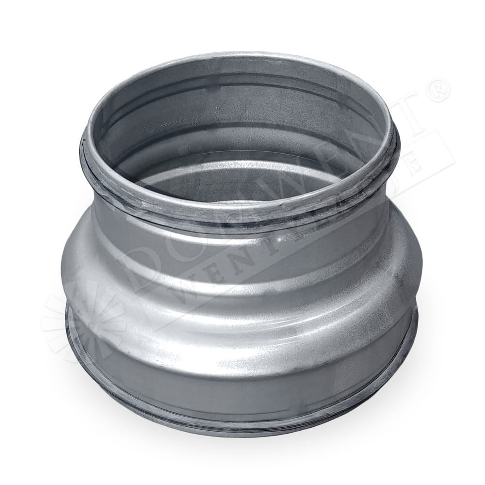 Opis: Redukcja stalowa łączy bezpośrednio przewody TERMOFLEX, SONODUCT, SPIRO, FLEX, ALUFLEX. Przykładowo: przewód np. Ø160 + redukcja 160/100 + przewód Ø100 + 2 opaski.