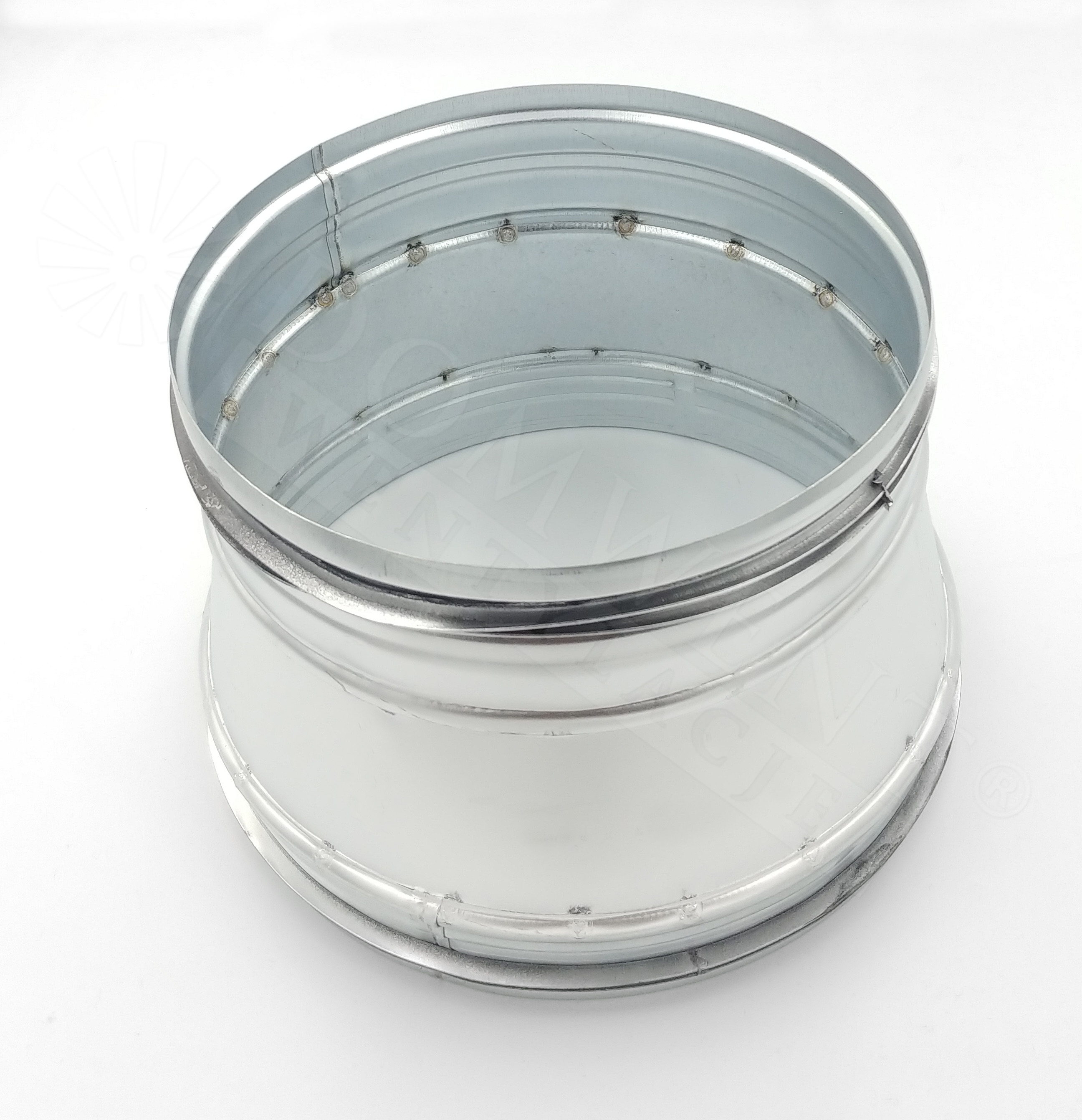 Redukcja posiada króćce okrągłe zakończone nyplowo. Stosowana jest do zmiany rozmiaru prowadzonej instalacji wentylacyjnej.