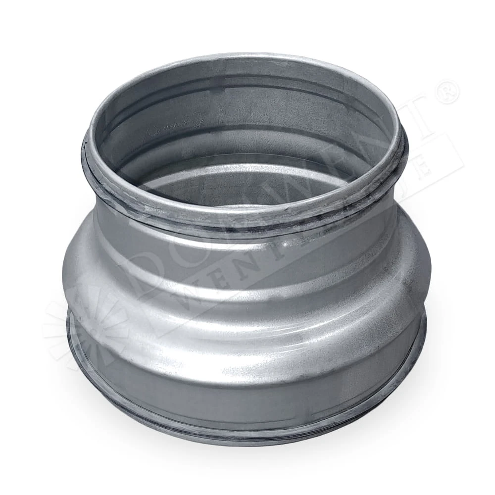 Redukcja posiada króćce okrągłe zakończone nyplowo. Stosowana jest do zmiany rozmiaru prowadzonej instalacji wentylacyjnej.