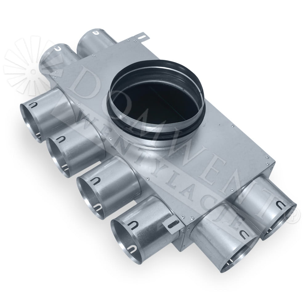 | ROZDZIELACZ RUROWY OŚMIO-KRÓĆCOWY. Wejście: 8x75 mm. Wyjście: Ø200. |