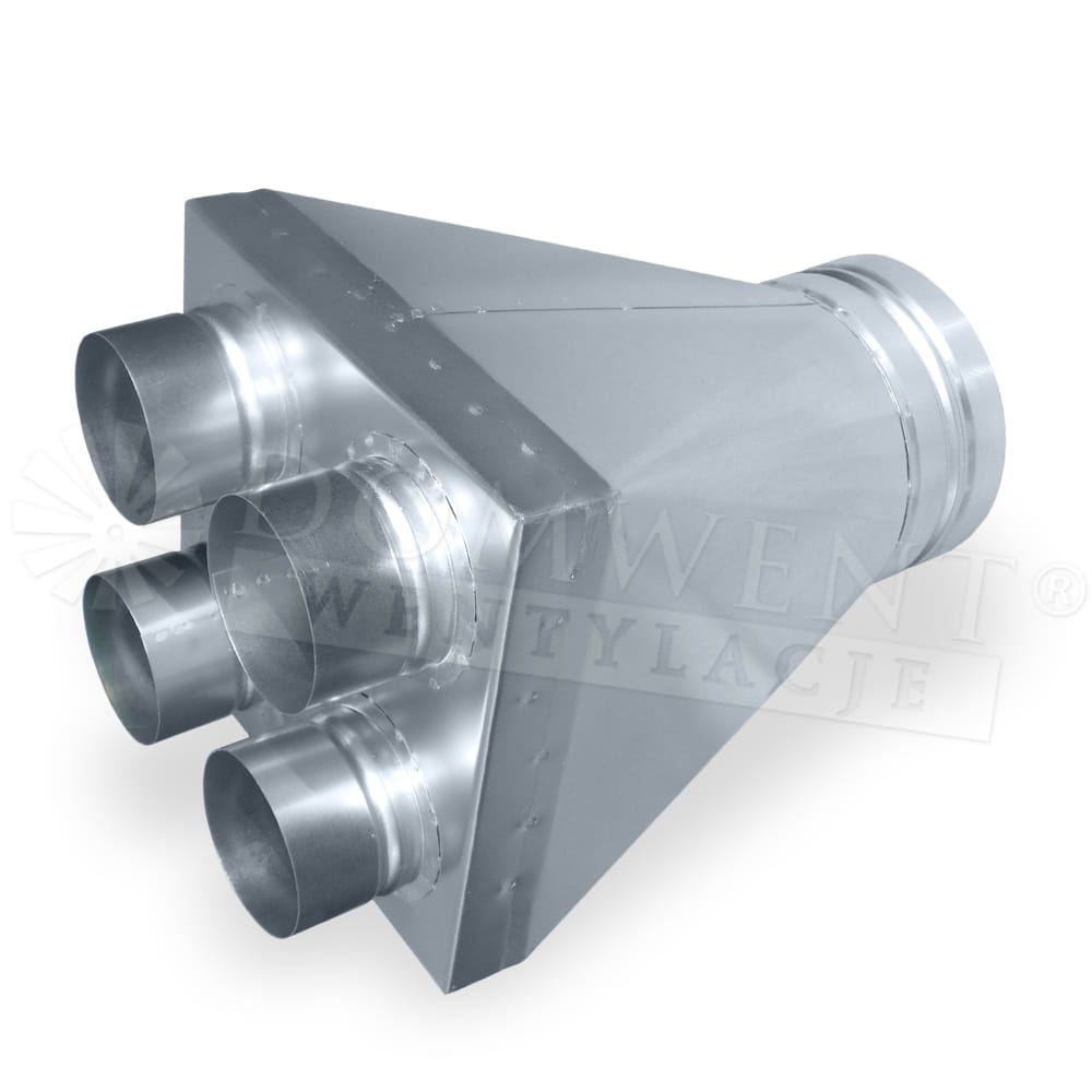 Skrzynka rozprężna stosowana jest do rozdzielania instalacji wentylacyjnej, klimatyzacyjnej lub dystrybucji gorącego powietrza na kilka osobnych ciągów.