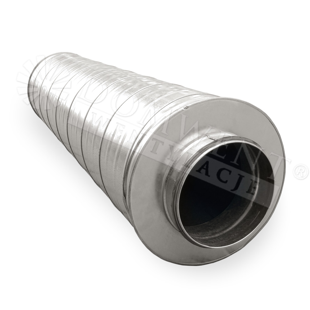 Tłumik akustyczny stosowany jest do tłumienia hałasu w przewodach wentylacyjnych o przekroju okrągłym. Wykonywany jest z blachy nierdzewnej, natomiast warstwę tłumiącą stanową łupki z wełny skalnej zabezpieczone antybakteryjną tkaniną z włókna szklanego. Produkt ten ze względu na budowę jest tłumikiem „sztywnym”.
