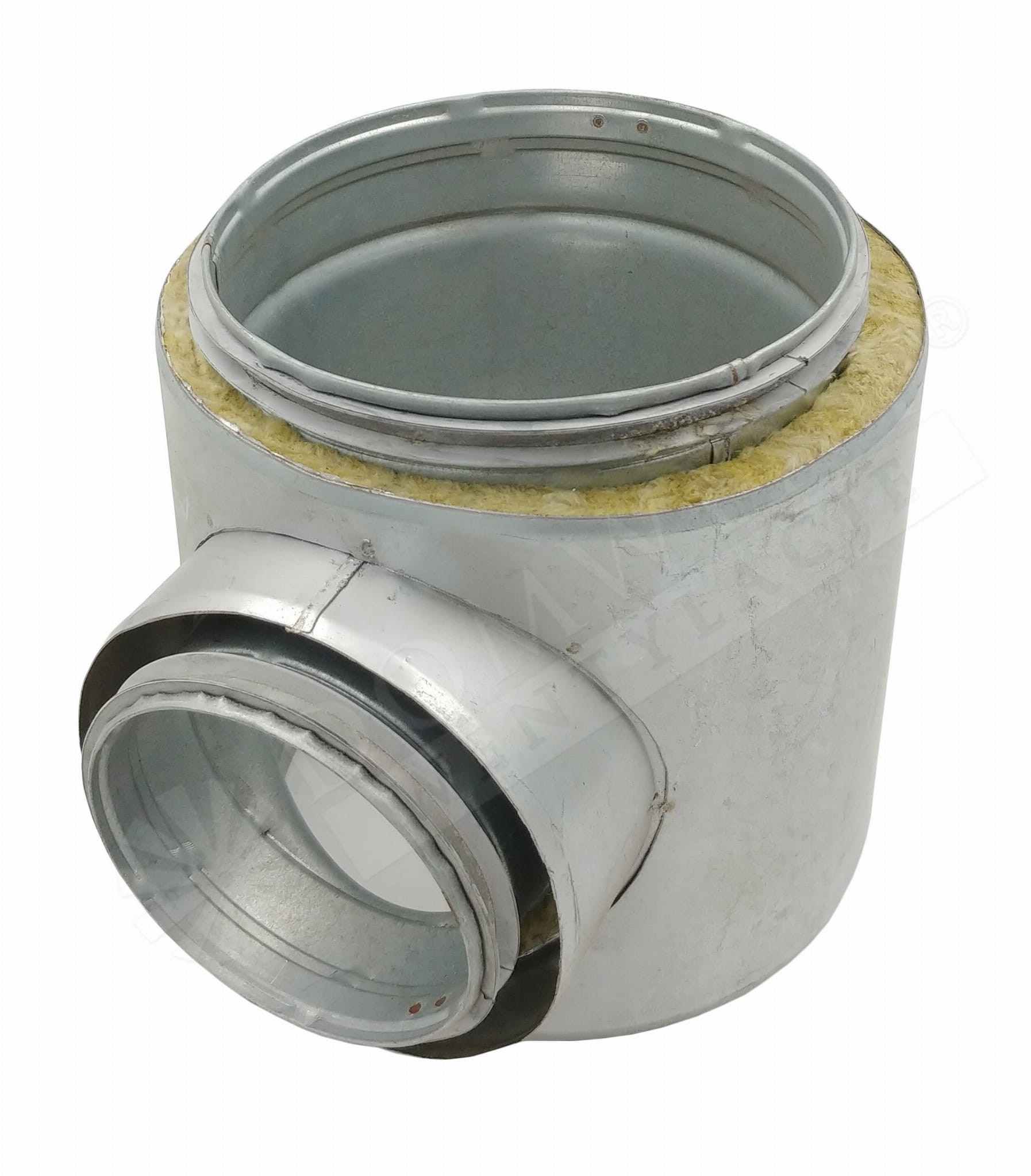 Wykonany z blachy ocynkowanej i izolacji z wełny mineralnej o grubości 15mm preizolowany trójnik w wykonaniu nyplowym (łączy się bezpośrednio bez żadnych złączek, bo wsuwa się do środka rury lub przewodu). Ponadto wewnętrzny płaszcz wyposażony został w uszczelkę zapewniającą szczelność połączenia. Elementy preizolowane umożliwiają łatwy montaż izolowanej termicznie instalacji wentylacyjnej. Stosowany jest do montażu odgałęzienia pod kątem 90° w instalacji wentylacyjnej. Odejście umiejscowione symetrycznie jest zredukowane w stosunku do przelotu.