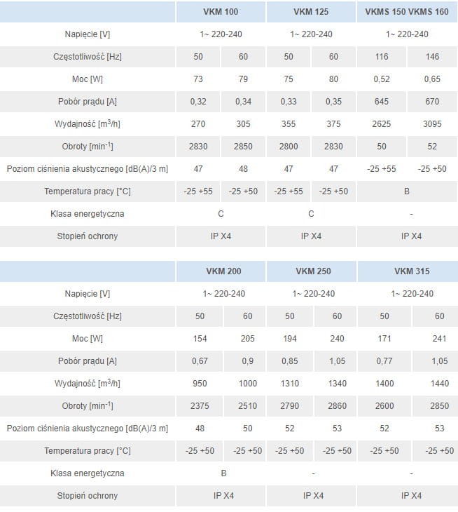 | WENTYLATOR KANAŁOWY ODŚRODKOWY VKM 160 |
